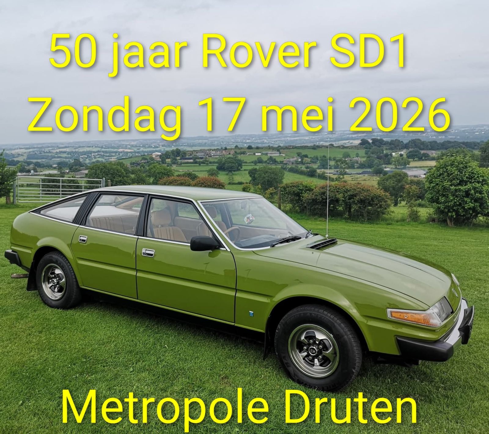 Meeting "50 jaar Rover SD1" op 17 mei 2026 op de parkeerplaats van bij automuseum Metropole in Druten.