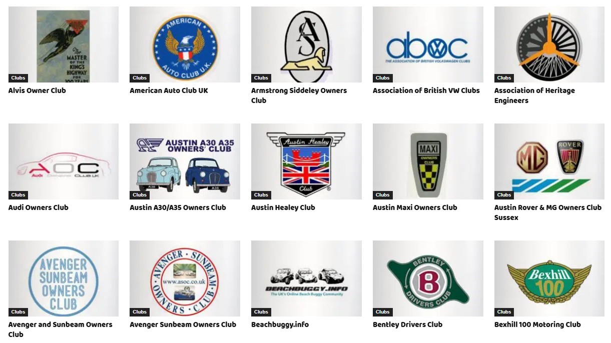 Een willekeurige greep uit het zeer complete overzicht van de Engelse autoclubs op de website van: